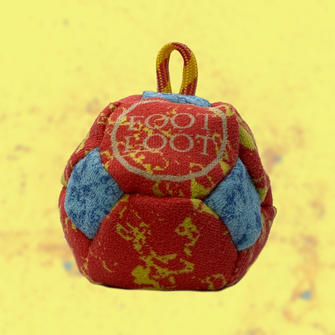 14 panel foot bag. The Litmus design is actually a lo poly concrete texture that I thought looked pretty cool and I cant seem to get away from it! the square panels on this one are inverted colors of the red and yellow panels. fire and ice! The bag weighs 70g and is carbon steel and sand 40% fill. All foot bags are designed, printed, and sewn in house! Feel free to message me on IG or send me an email if you have additional questions or suggestions! Hope you're having a good one. thanks for looking.